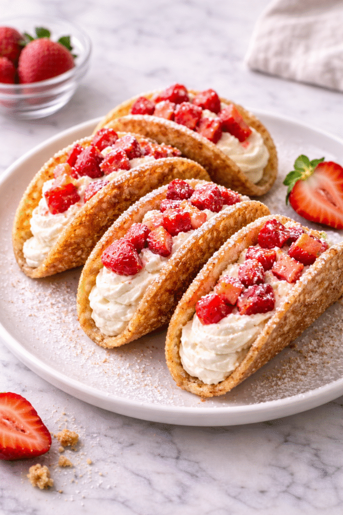 Whether you’re hosting, treating yourself, or just want a dessert that feels fun again, these Strawberry Cheesecake Tacos are about to become your new obsession 💖 So grab your tortillas, your cottage cheese, and let’s make some dessert magic 🌮🍓✨