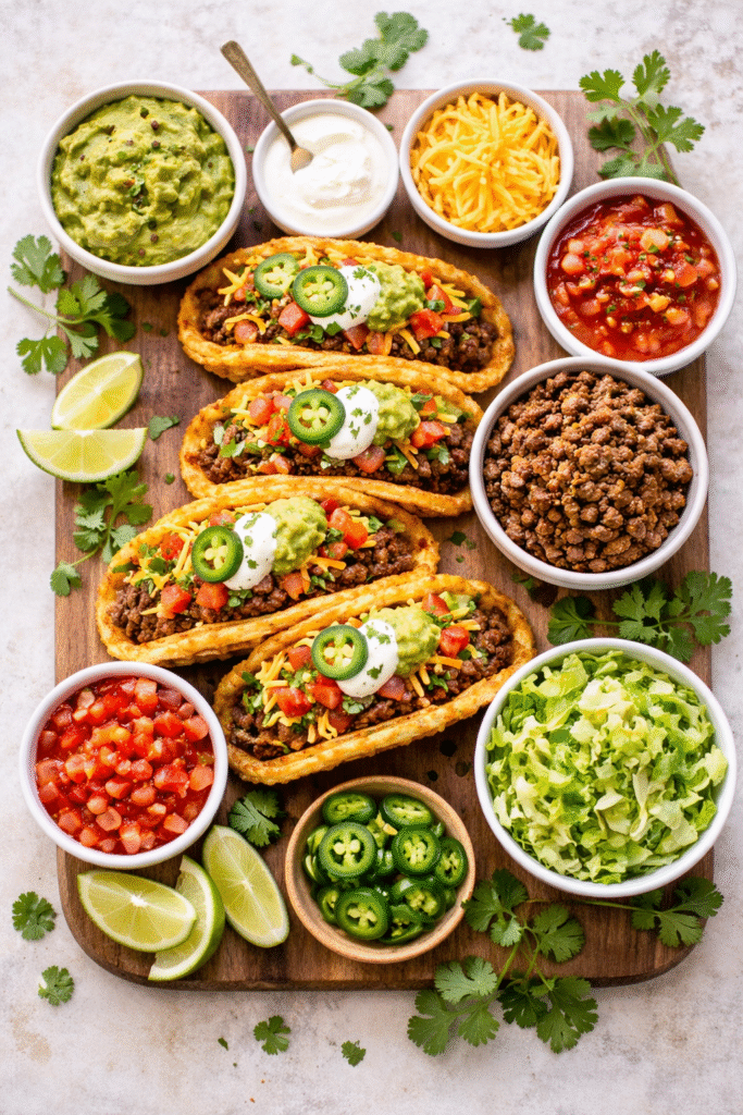 - Pre-Make Components: The shells, meat, and chopped toppings can all be prepped ahead of time for a stress-free assembly.