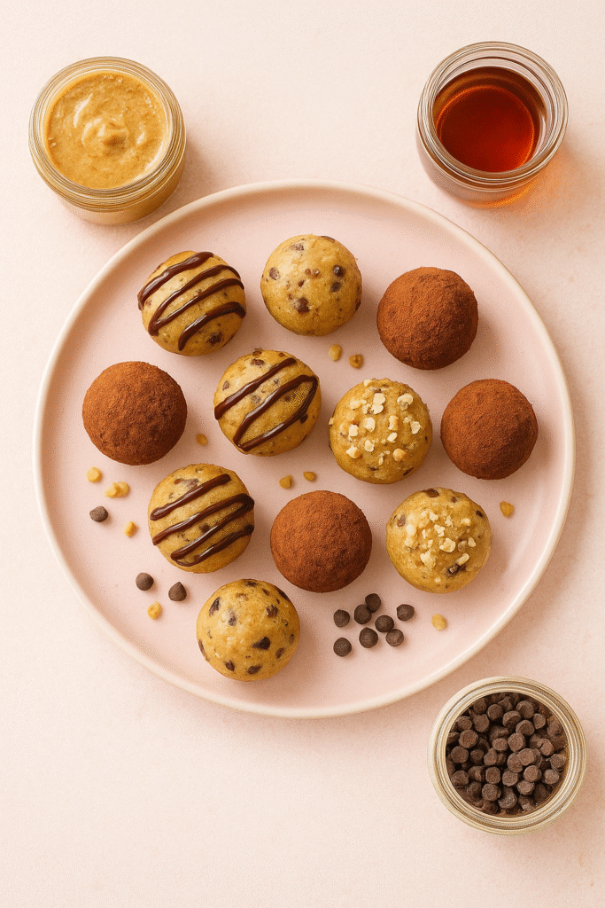 They’re wildly customizable, which is perfect if you like to get creative. Swap the nut butter for almond, cashew, or even sunflower seed butter 🌰. Change up the protein powder flavor—vanilla, chocolate, or strawberry all work beautifully. Feeling extra festive? Toss in some sprinkles, cacao nibs, or mini chocolate chips for an aesthetic snack that’s totally Instagram-worthy.