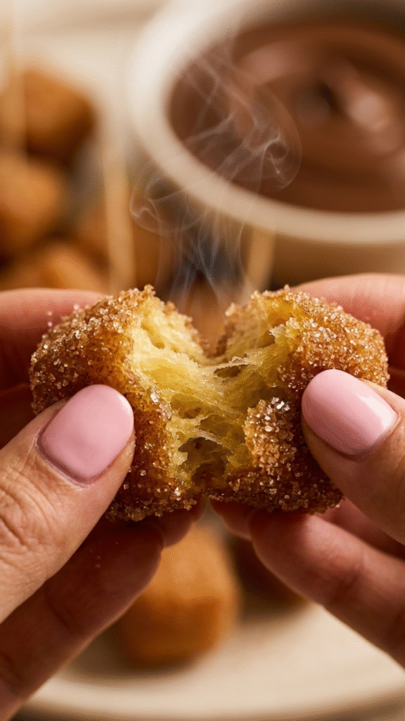 They’re crispy on the outside, soft and tender on the inside, with that almost custard-like center that gives you full real churro energy without the deep fryer in sight.
