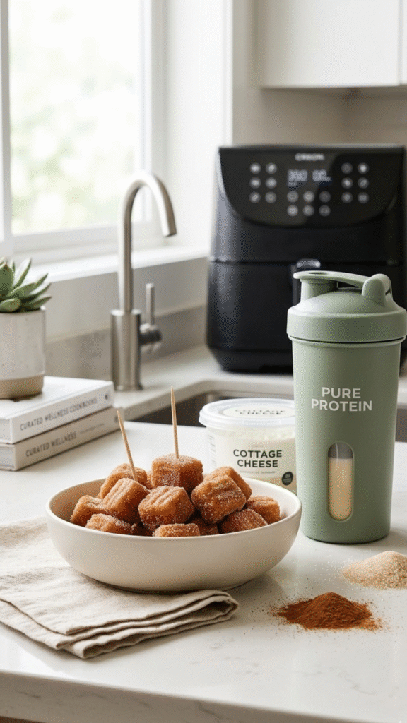 Say hello to High-Protein Keto Cottage Cheese Churro Bites (Air Fryer, 15g Protein)🍥✨
