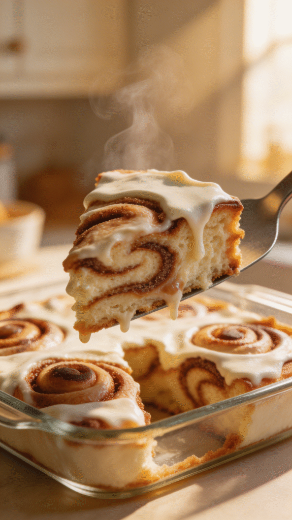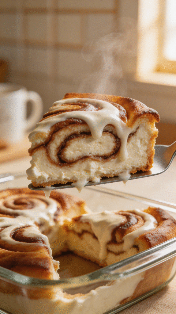 Imagine a soft, pillowy, melt-in-your-mouth bake swirled with rich cinnamon filling, baked until golden and cozy, then topped with a creamy vanilla glaze that drips into every little swirl like it was meant to be there.